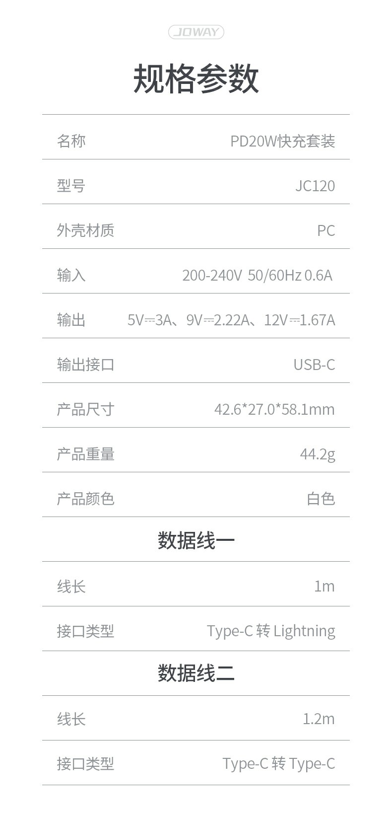 JC120 PD20W充電器