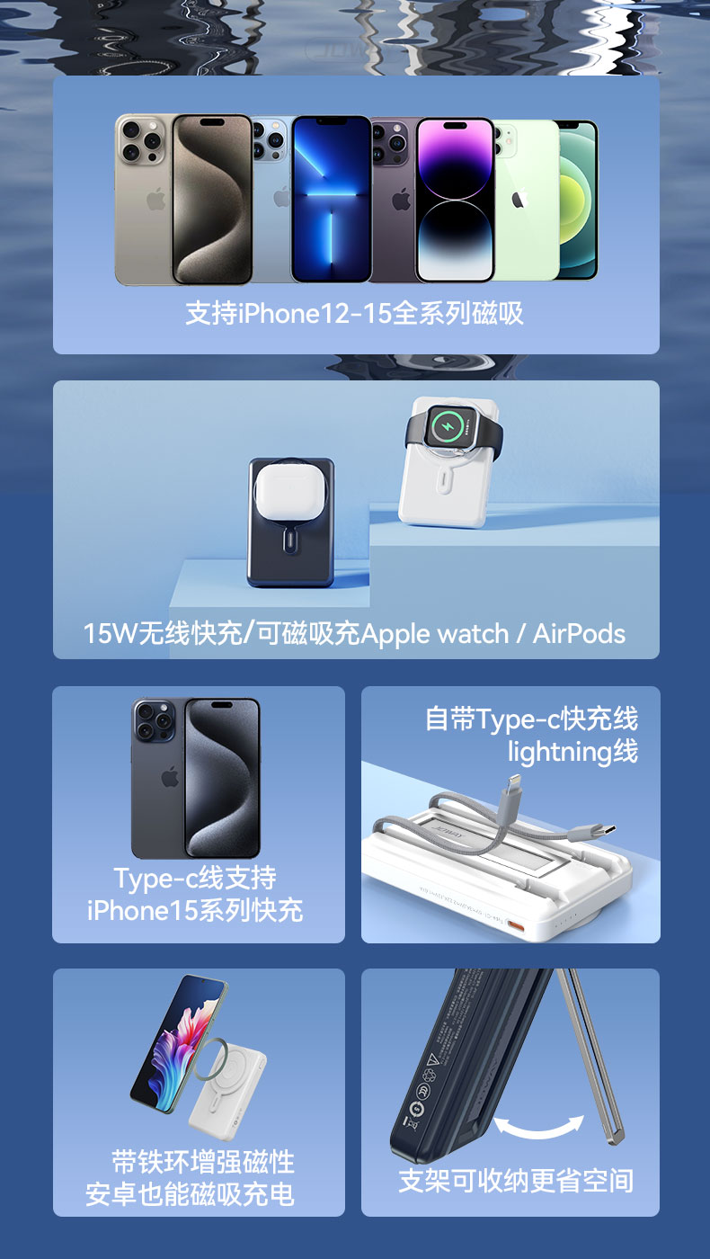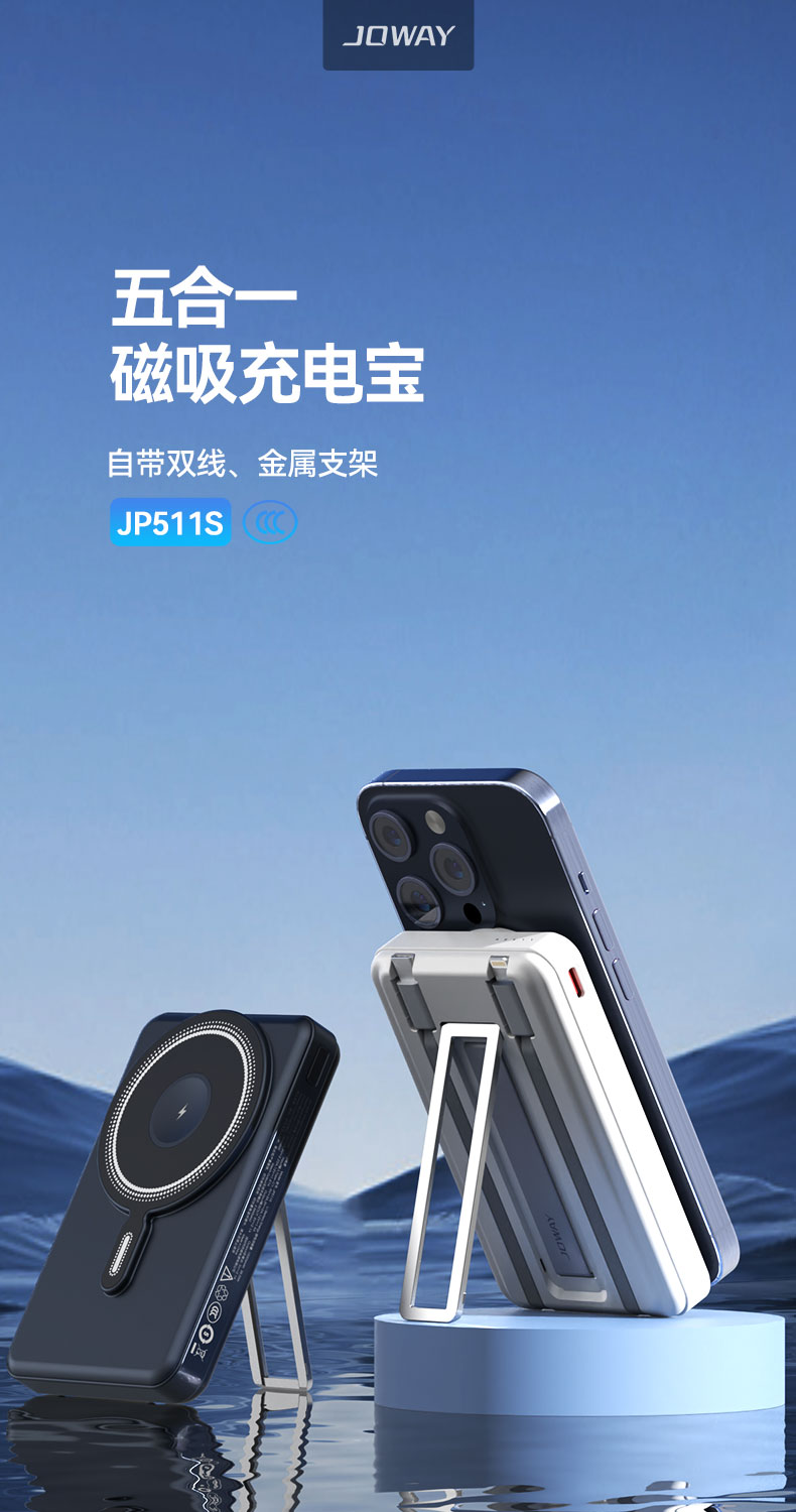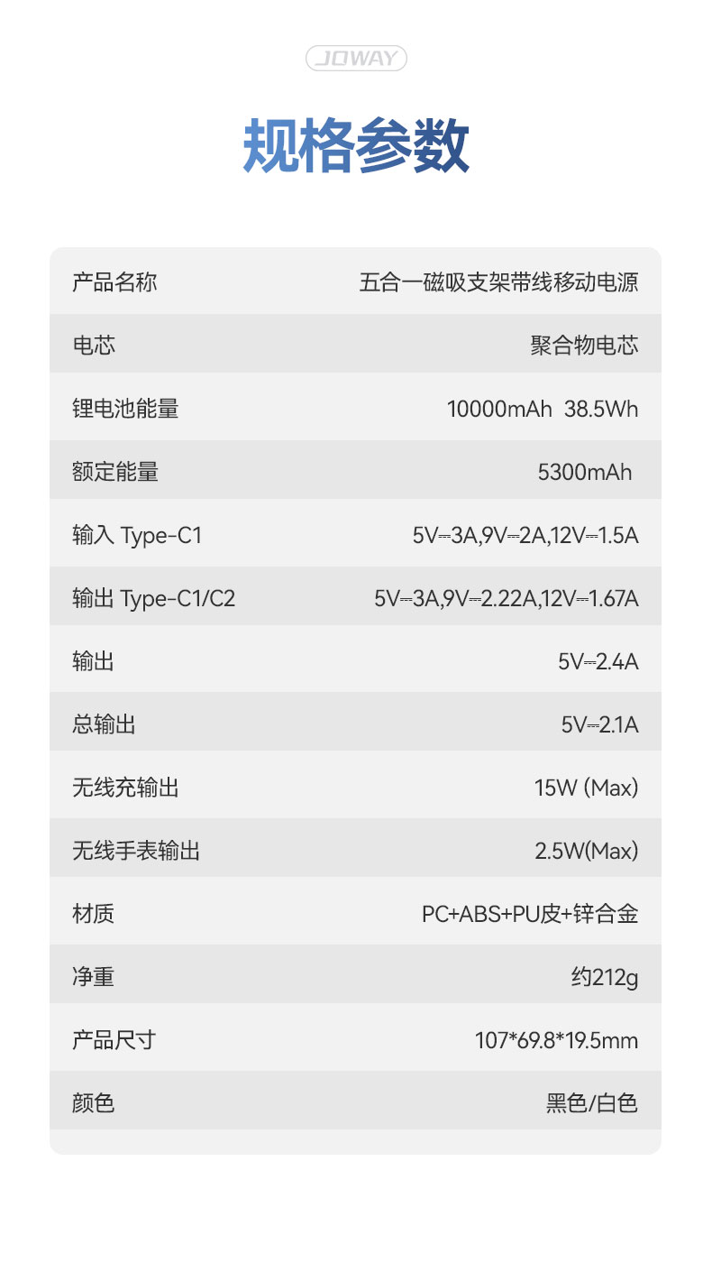 名稱:五合一磁吸支架帶線移動(dòng)電源