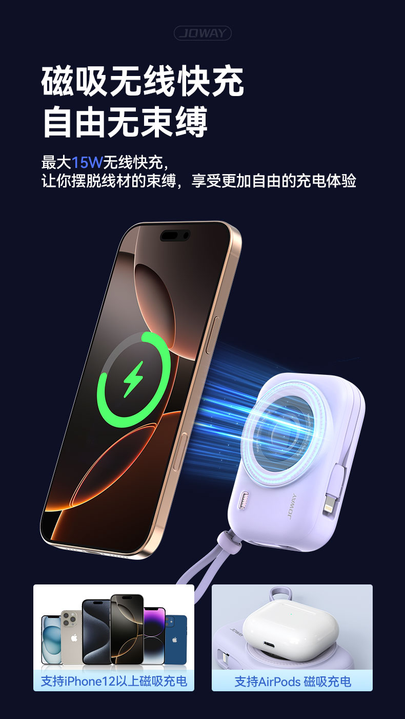 名稱:自帶雙線磁吸無線充移動(dòng)電源