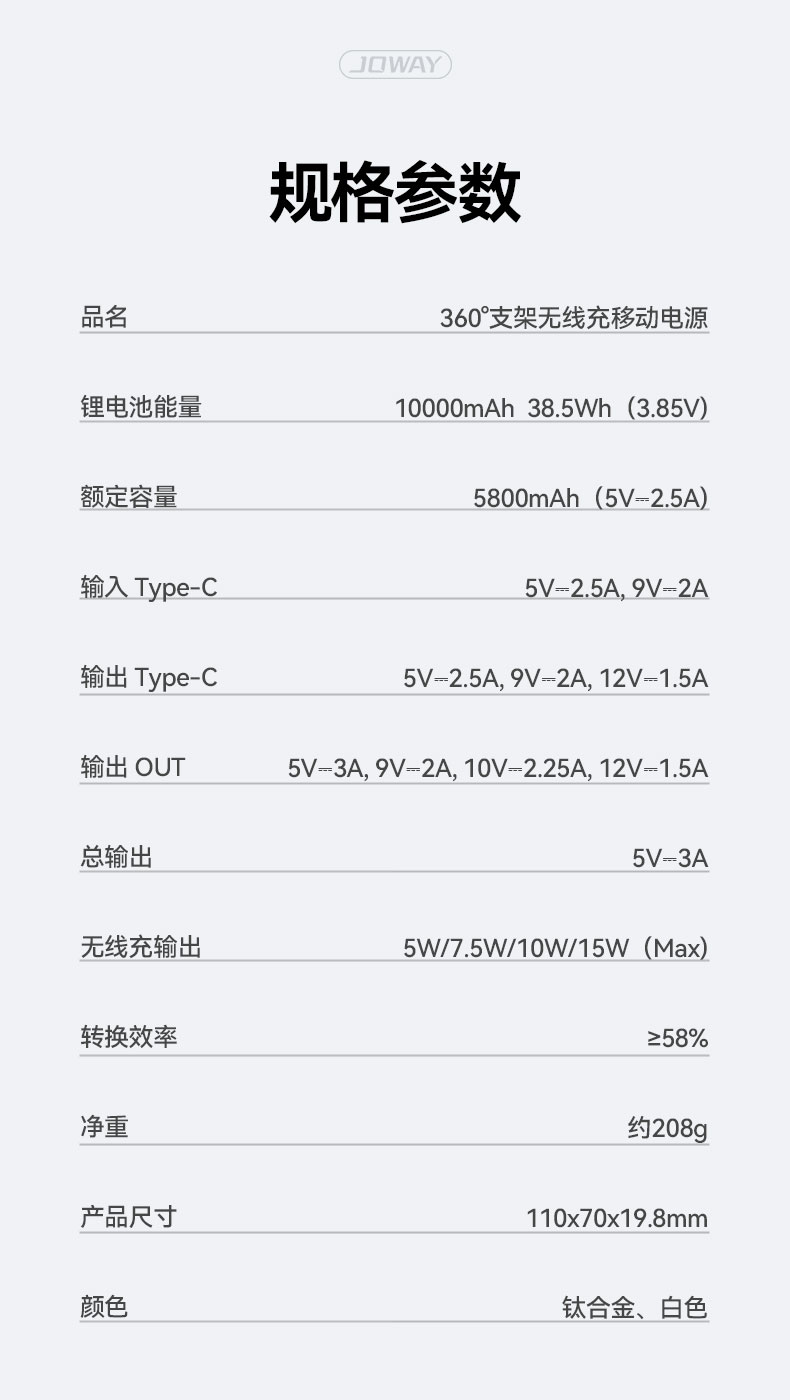 名稱:360°支架無線充移動電源